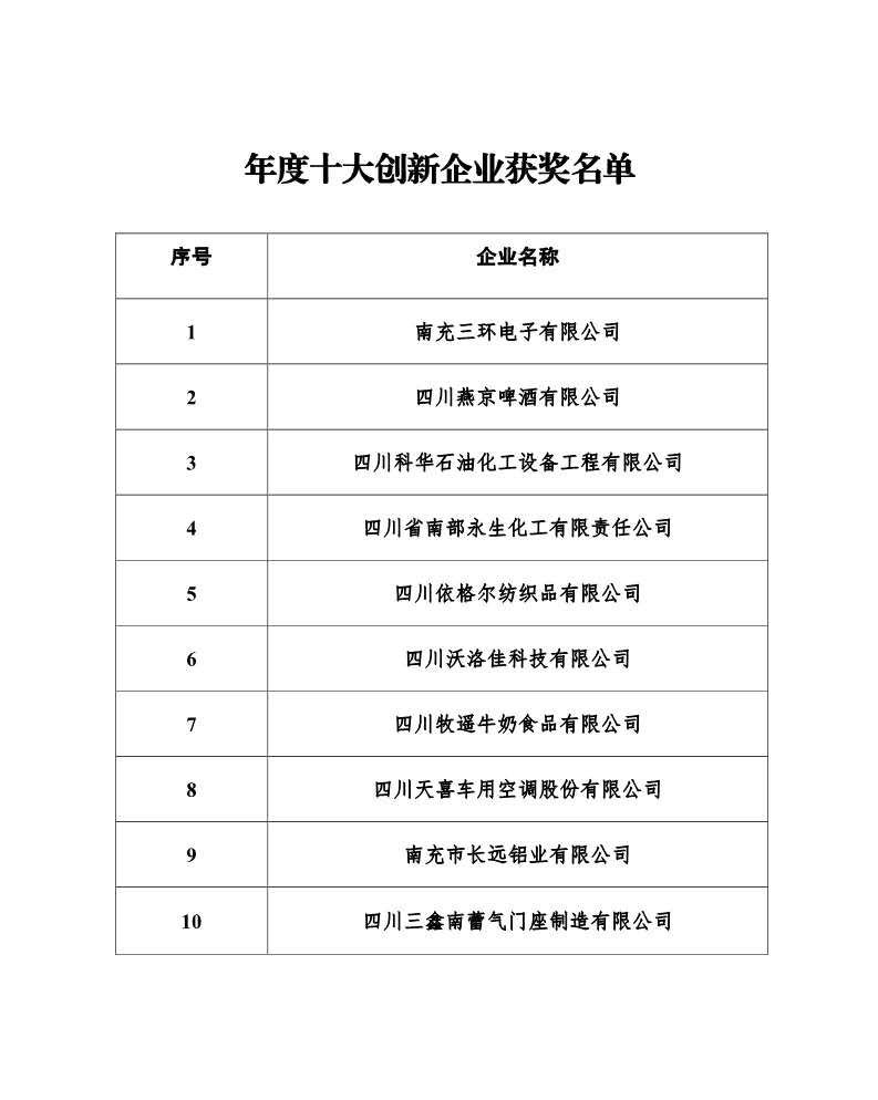 获奖名单。四川沃洛佳科技有限公司凭着显著的科技创新成果在比赛中取得优异成绩,列于“年度十大创新企业”榜单之中,此次获奖给予沃洛佳在科技成果转化中是极大的肯定,沃洛佳表示,企业将会在市委、市政府的领导下更加努力提升创新能力,再接再厉,勇攀高峰,再创辉煌!