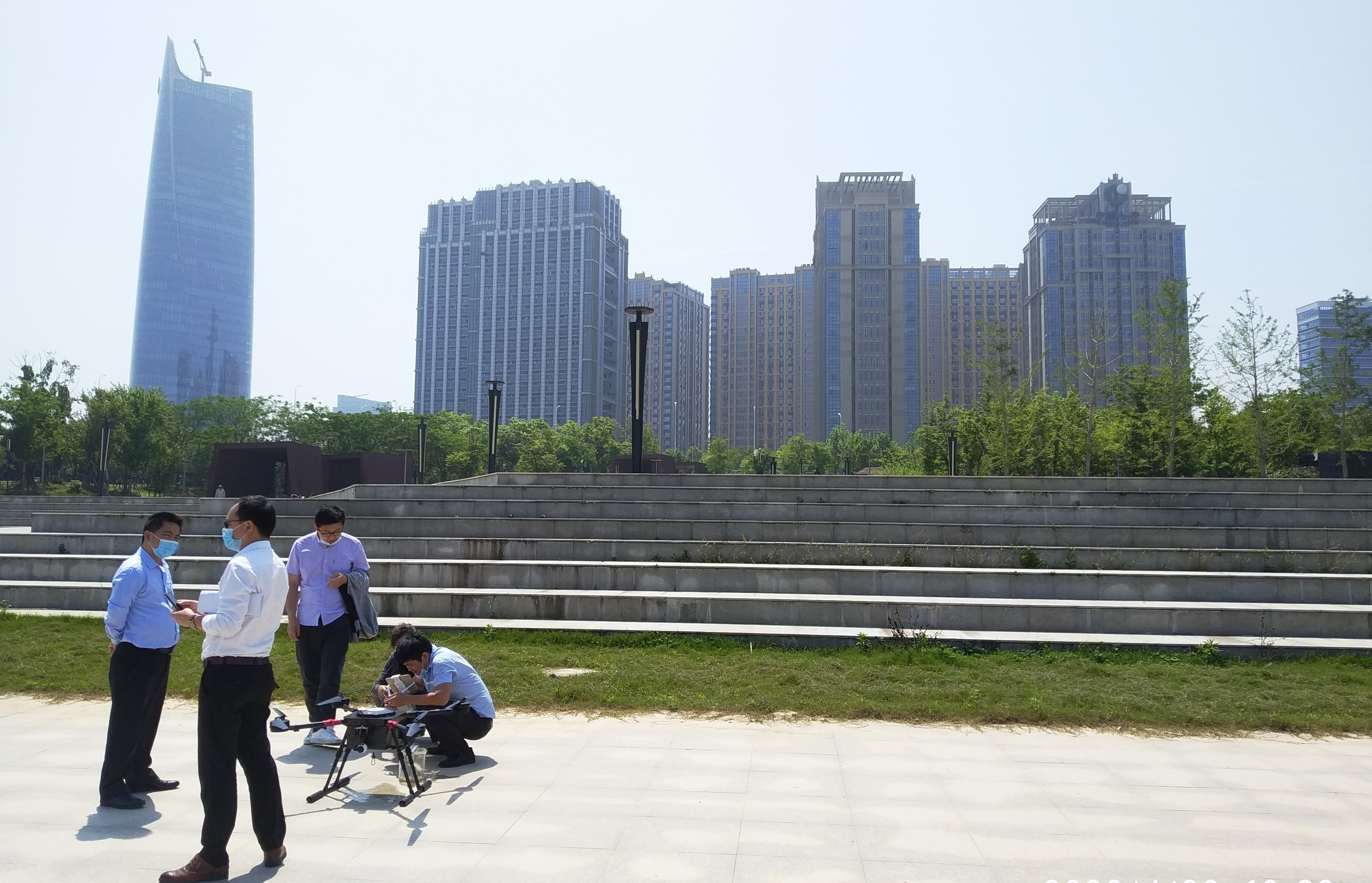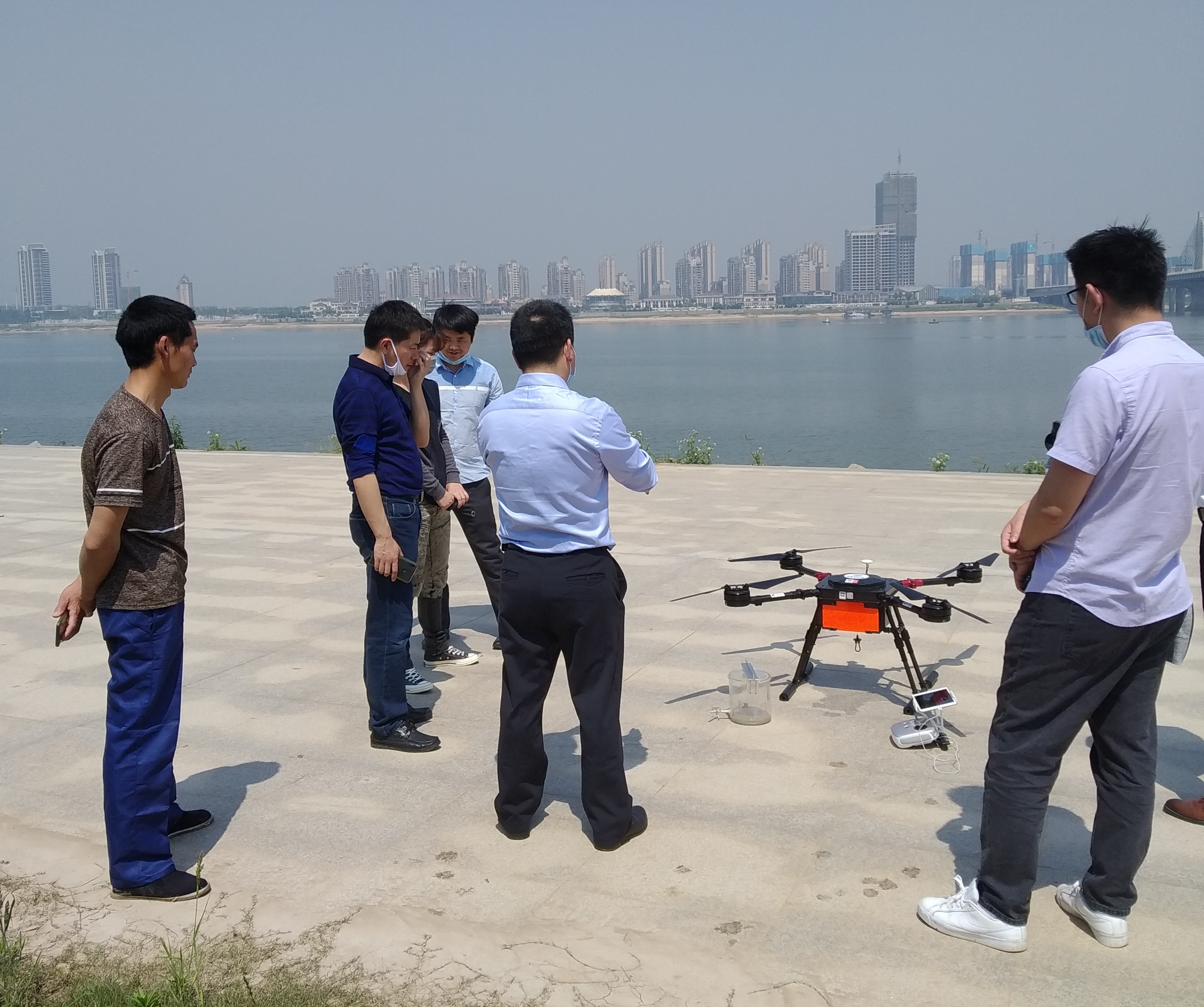 后技术人员在赣江给水文局同志进行了无人机采样演示,得到了水文局同志的一致好评。