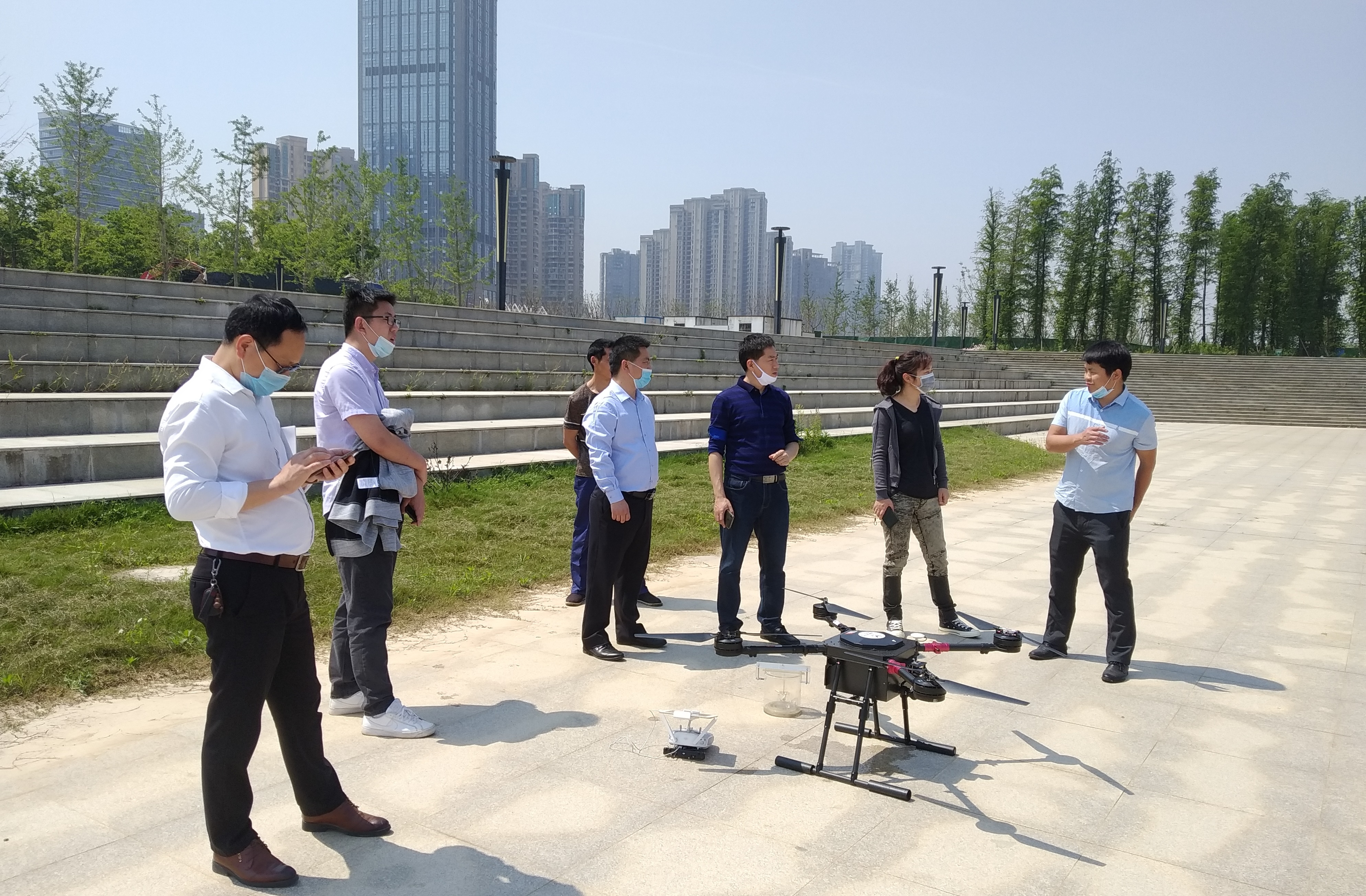 4月29日上午,四川沃洛佳科技有限公司一行5人到达江西省南昌市水文局, 给水文局领导展示了我司产品鱼鹰自动采样无人机,并与领导们
