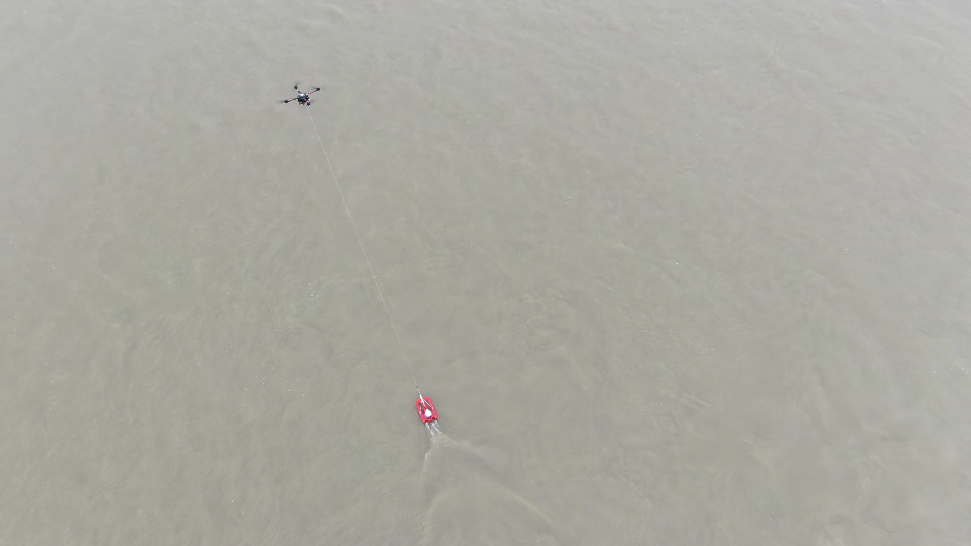 无人机拖拽三体船演练