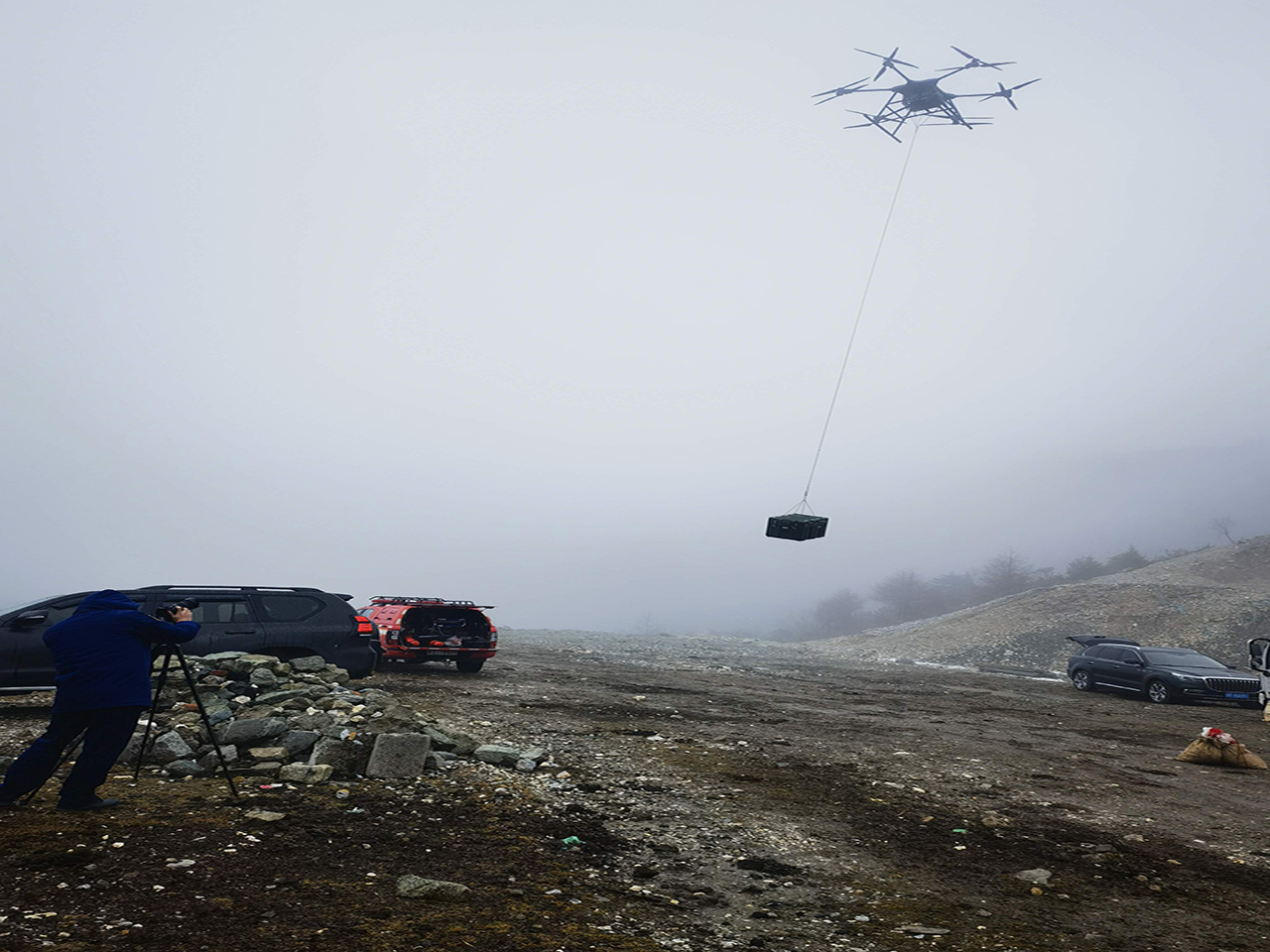 2025 年 4 月 14 日,我司多功能重载无人机CS200在甘孜州省道434雅家埂段参加由四川省消防救援总队主办的新型装备效能测试--高寒高海拔无人
