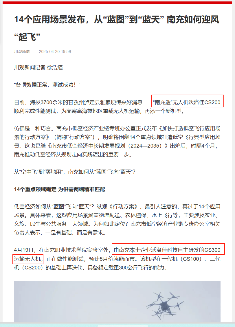 2025年4月20日,川观新闻记者——徐浩煊来我到司,“南充造”无人机沃洛佳科技再现