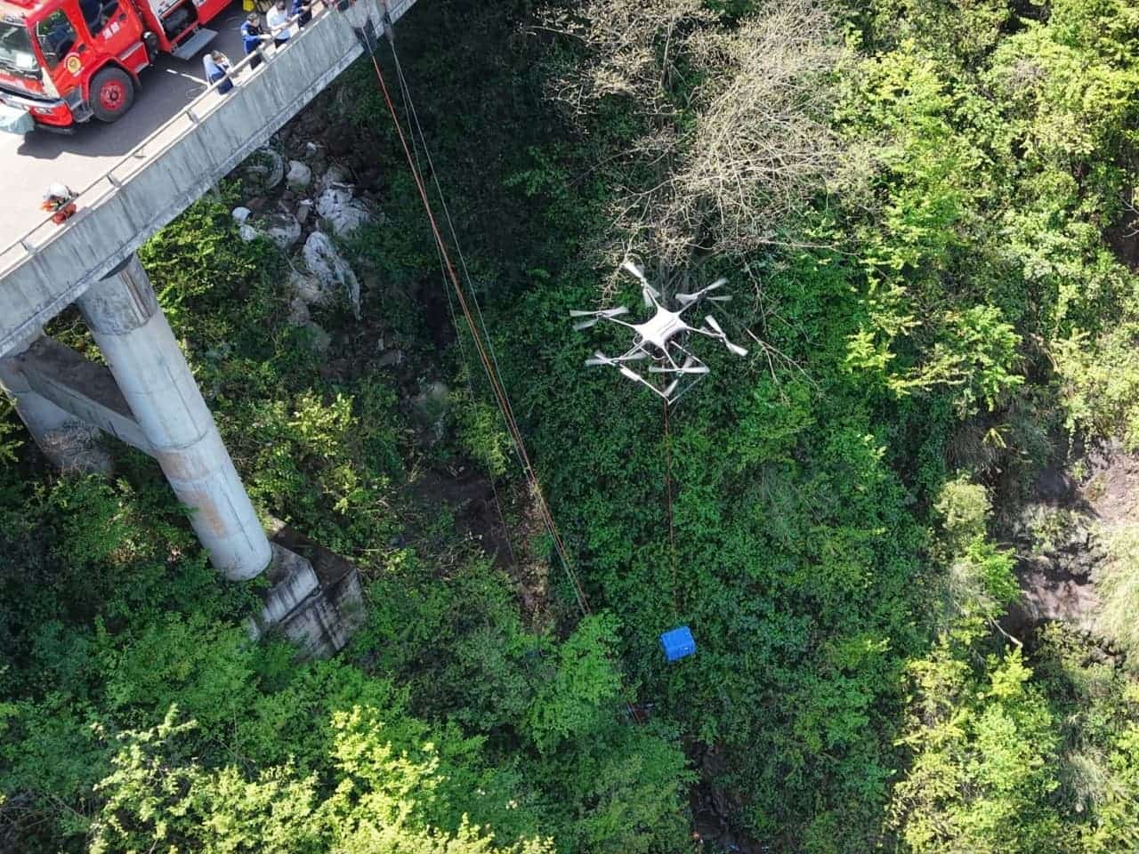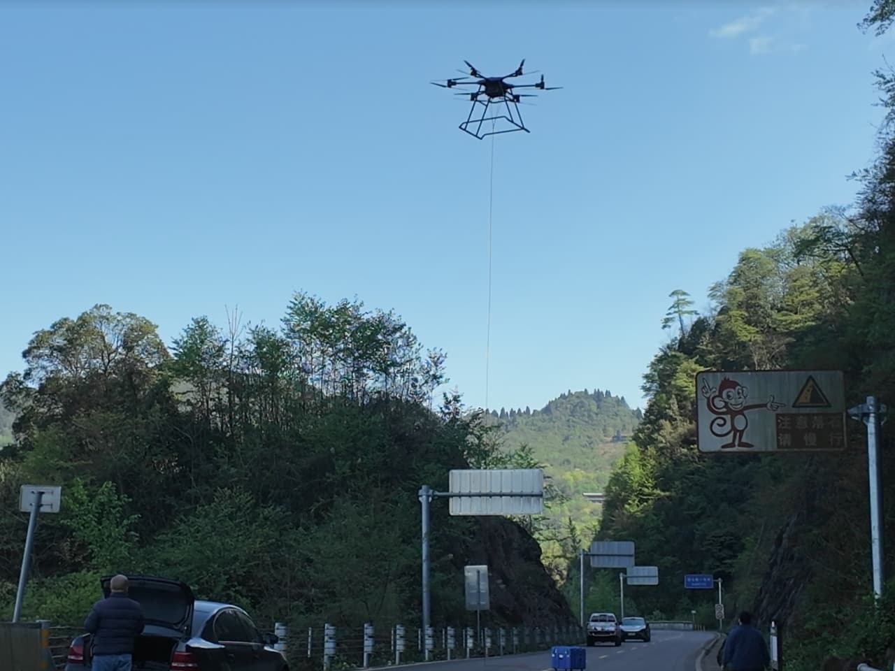 峨眉山地形复杂、山高坡陡,对应急救援物资的投送提出了极高要求。演练中,沃洛佳科技CS100重载无人机凭借卓越的垂直起降能力、强大的载重性能和稳定的飞行控制系统,在复杂山地环境中实现了救援物资的精准投送,充分验证了在山地、复杂场景下应急救援的实战价值。