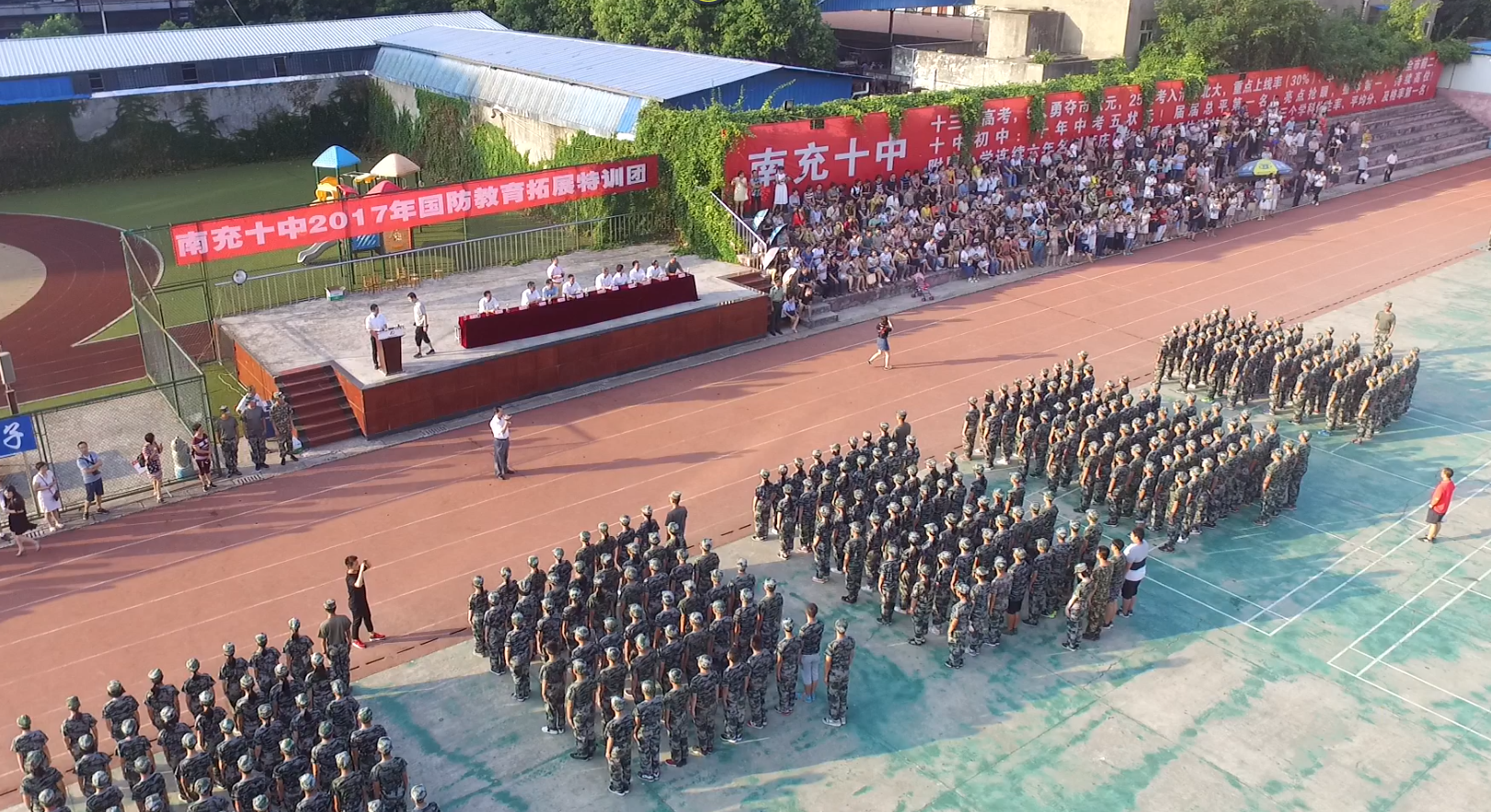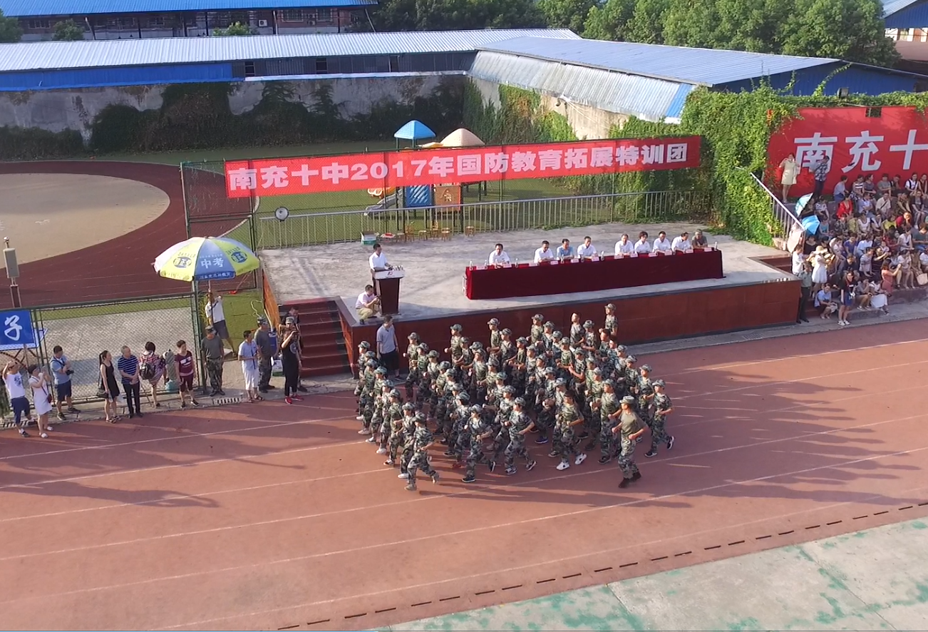 南充十中2017级中学新生军训于学校田径运动场进行,8月28日南充十中邀请四川沃洛佳科技有限公司为其进行了军训航拍,在一个个航拍镜头下,同学们表现出不畏困难、坚持到底的精神,相信通过此次军训,刚踏入中学校门的同学们必定能够养成艰苦奋斗的意志和遇到困难不退缩的决心。